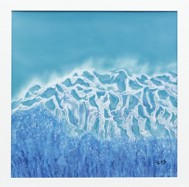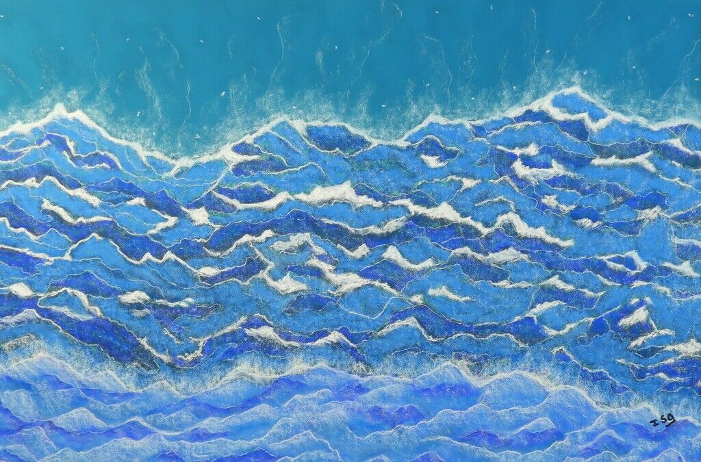 Au cœur de l’océan, là où les vagues sculptent les méandres d’un monde en perpétuel mouvement, Isabelle Alberge donne vie à une vision artistique empreinte de force et de vitalité. Son travail au pastel sec capture l’essence même de la vie marine, entre embruns et éclaboussures, dans un jeu subtil de contrastes et de nuances.