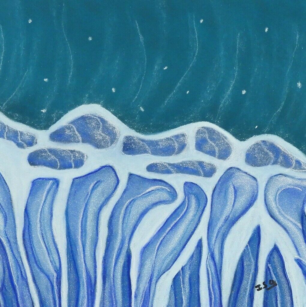 Entre îlots de lumière et ombres profondes, ses pastels saisissent les contrastes d’une mer en constante métamorphose. Chaque trait est une ode à ce mouvement perpétuel, où l’ambiance se fait tour à tour brumeuse et éclatante. À travers ses œuvres, Isabelle Alberge (Isa) nous invite à plonger dans l’énergie brute de l’océan, à en ressentir la force et la poésie, et à nous laisser emporter par le rythme fascinant des vagues.